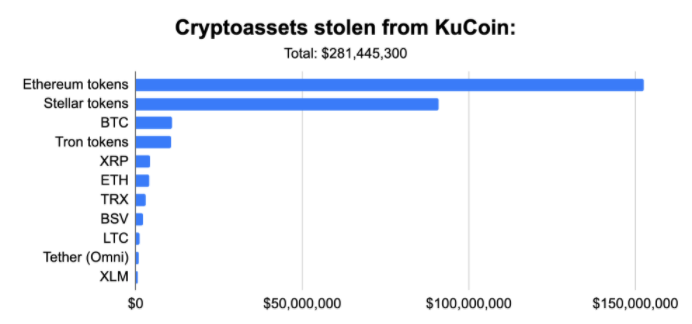 Elliptic had confirmed that instead of $150 million first reported, $281 million were the actual amount of cryptocurrency stolen from the Asian exchange on Sept. 25, making the KuCoin hack the third-largest theft ever suffered by a crypto exchange.